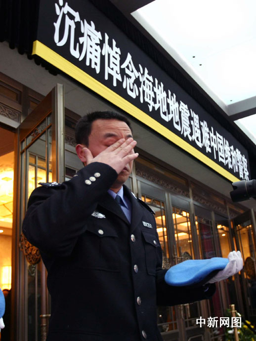 海地地震遇難中國維和警察遺體告別儀式1月20日上午9時在北京八寶山殯儀館大禮堂舉行。圖片來源:中國新聞網(wǎng)