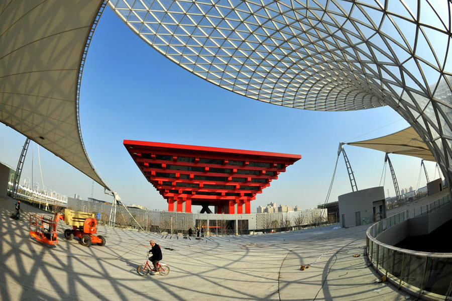 2010年1月21日上海迎來世博會開幕倒計時100天。世博會場館建設進入最后沖刺階段,部分場館已形象初顯。