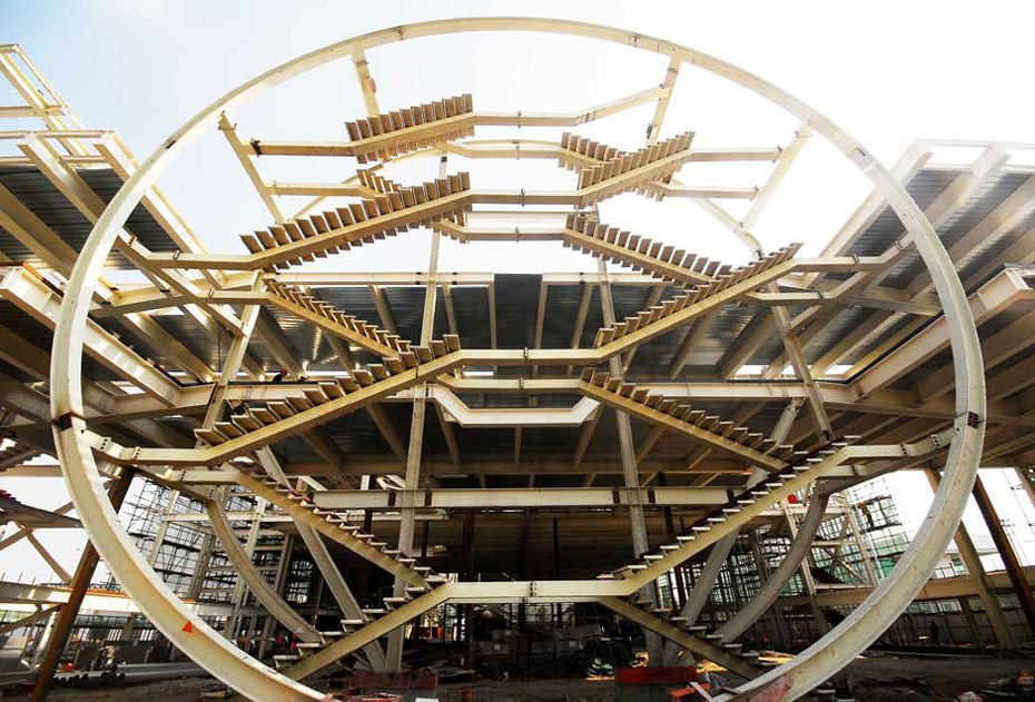 2010年1月21日上海迎來世博會開幕倒計時100天。世博會場館建設(shè)進入最后沖刺階段,部分場館已形象初顯。圖為韓國館。鈕一新/CFP