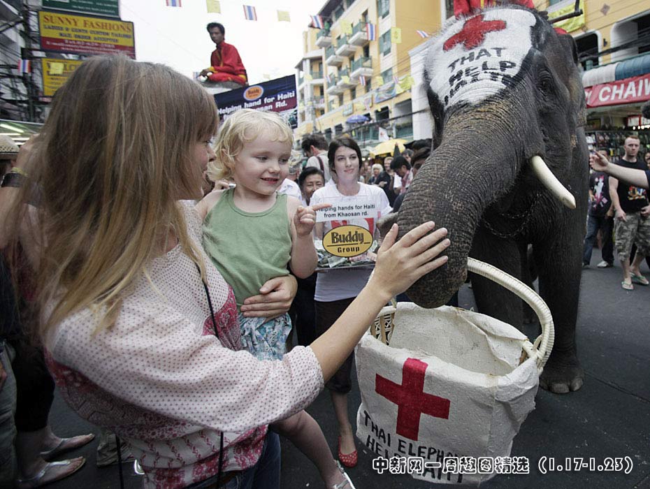 1月21日,在泰國首都曼谷舉辦了一場大象為海地災(zāi)區(qū)募捐活動。人們紛紛向大象攜帶的籃子內(nèi)放入善款,向海地地震幸存者獻(xiàn)上一份愛心。圖片來源:中國新聞網(wǎng)>>點(diǎn)擊觀看詳細(xì)內(nèi)容
