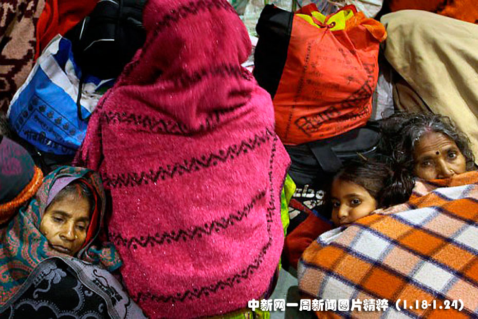 1月18日,乘客們在印度瓦拉納西的火車站候車時裹著毯子取暖。大霧和嚴寒天氣導(dǎo)致印度北部多個地區(qū)的交通中斷,反常的寒冷天氣已致使數(shù)十人喪生。圖片來源:中國新聞網(wǎng)