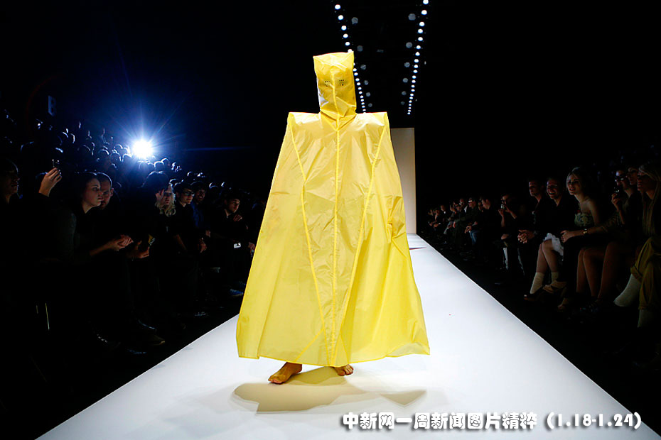 1月19日,一個(gè)模特在柏林時(shí)裝上展示設(shè)計(jì)師帕特里克摩爾的服飾作品。 圖片來(lái)源:中國(guó)新聞網(wǎng)