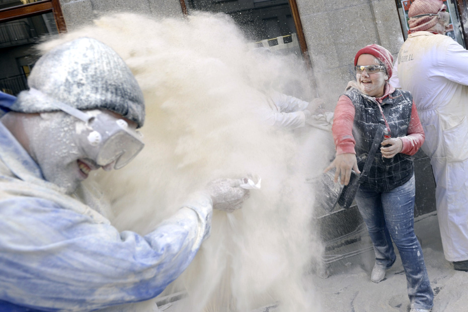 1月24日,西班牙西北部的一座村莊舉辦的狂歡節(jié)中上演瘋狂的“面粉大戰(zhàn)”。圖片來源:中國新聞網