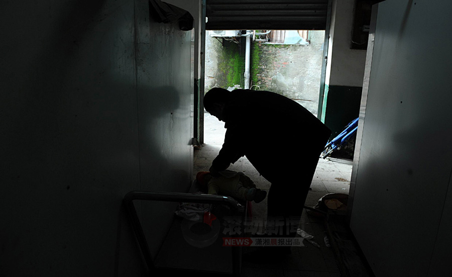 1月19日,省兒童醫(yī)院太平間,高雄飛給小振和穿上剛買的新衣服,送兒子最后一程!皟鹤樱“职纸o 你穿衣服來了,乖乖的啊!”高雄飛鼻子不停地抽搐,雙手卻輕輕地給 兒子穿上新買的黃色小衣裳。瀟湘晨報(bào) 記者 楊抒懷 攝