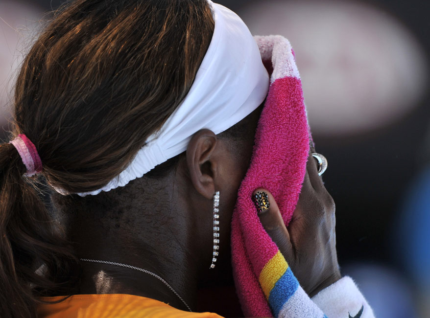 27日,中國選手李娜在澳大利亞網(wǎng)球公開賽上,以2-6、7-6、7-5頑強(qiáng)逆轉(zhuǎn)實(shí)力超群的大威廉姆斯,攜手鄭潔闖入四強(qiáng),并且創(chuàng)下了個(gè)人大滿貫最佳成績。圖片來源:中國新聞網(wǎng)