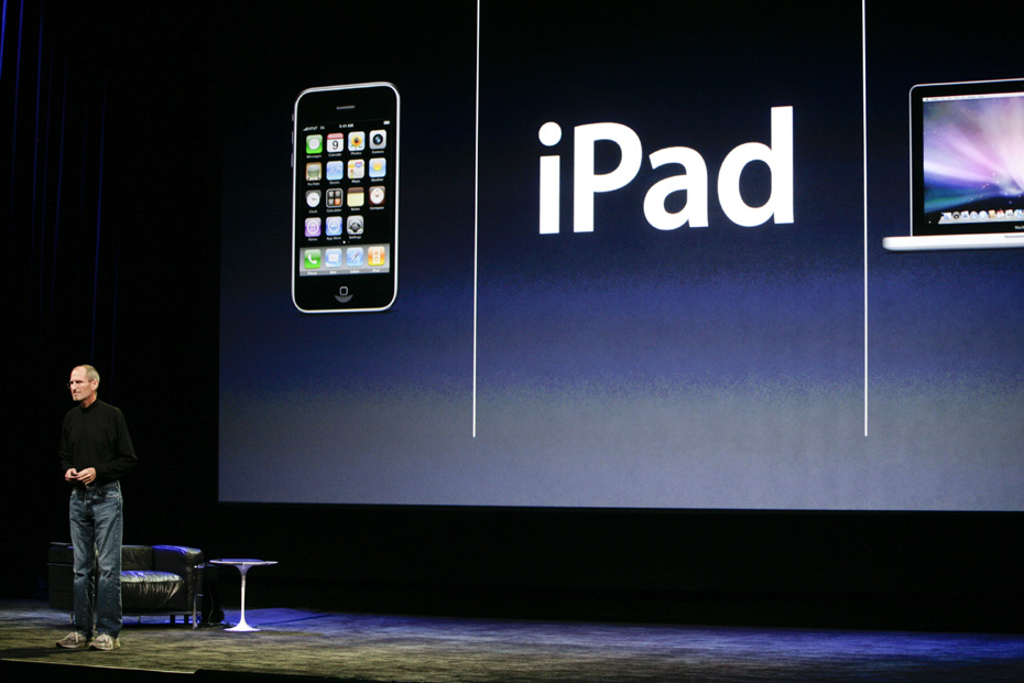 美東時間1月27日上午10點(北京時間1月28日凌晨2點),蘋果CEO喬布斯于在美國舊金山Yerba Buena藝術中心正式發(fā)布并展示了其首款平板電腦iPad。圖片來源:中國新聞網(wǎng)