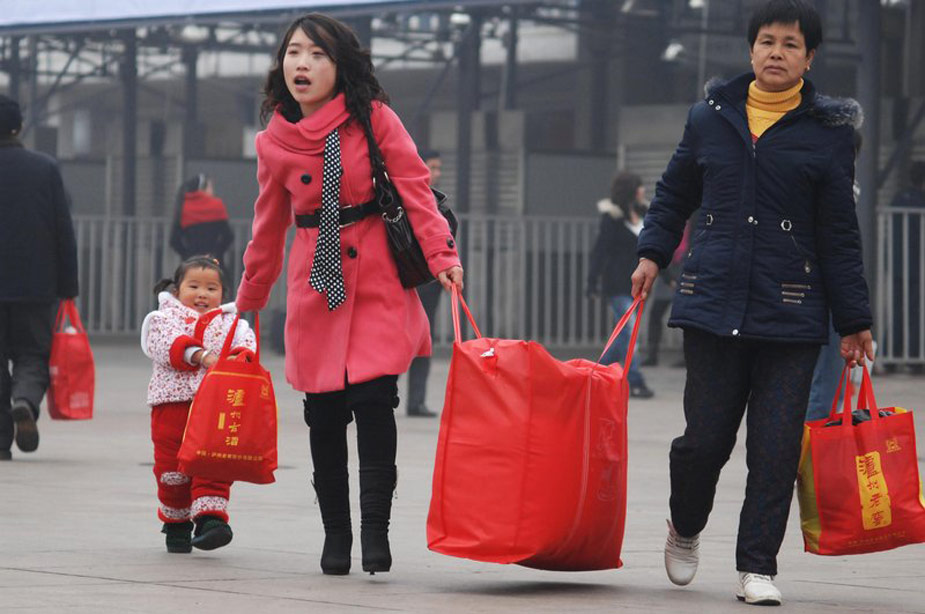一年一度的春運(yùn)今日起正式開始。2010年的春運(yùn)從1月30日起至3月10日,為期40天,其中節(jié)前15天,節(jié)后25天。據(jù)權(quán)威預(yù)測,今年春運(yùn)客運(yùn)量料超25億人次。圖為1月30日,長沙火車站,出行的旅客攜帶著大小包裹匆忙趕路。郭立亮 攝