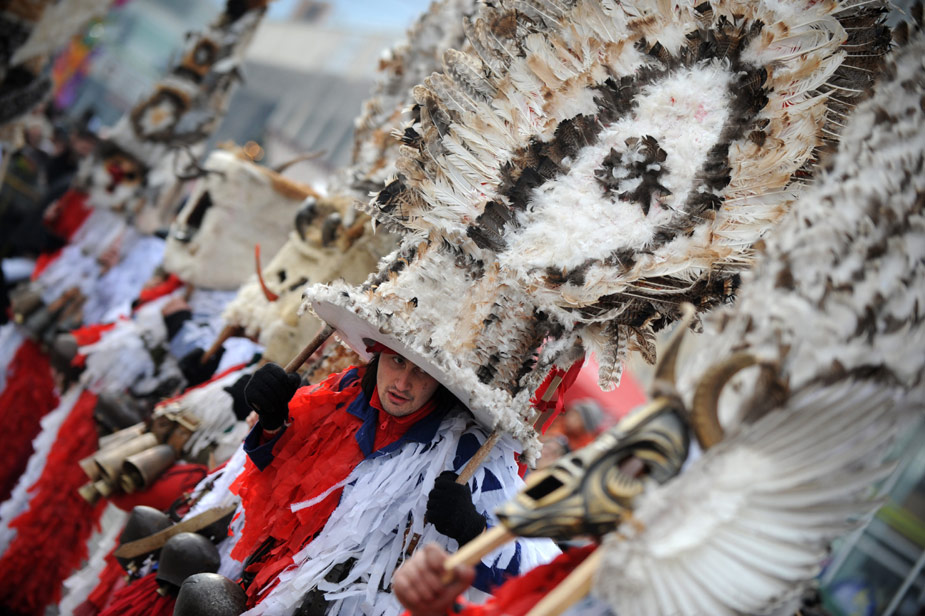 1月29日,為期三天的國際面具狂歡節(jié)在保加利亞小鎮(zhèn)佩爾尼克開幕,來自14個(gè)國家的6000多名演員參加了表演。圖片來源:中國新聞網(wǎng)