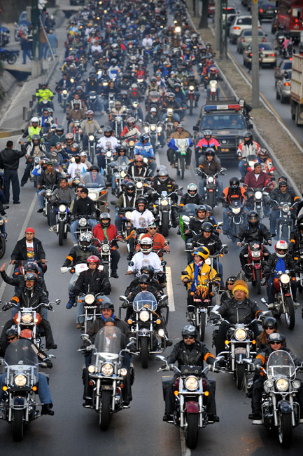 當(dāng)?shù)貢r間2月6日,在危地馬拉首都危地馬拉城,大約30000名摩托車手駕駛著機(jī)車在街頭游行。