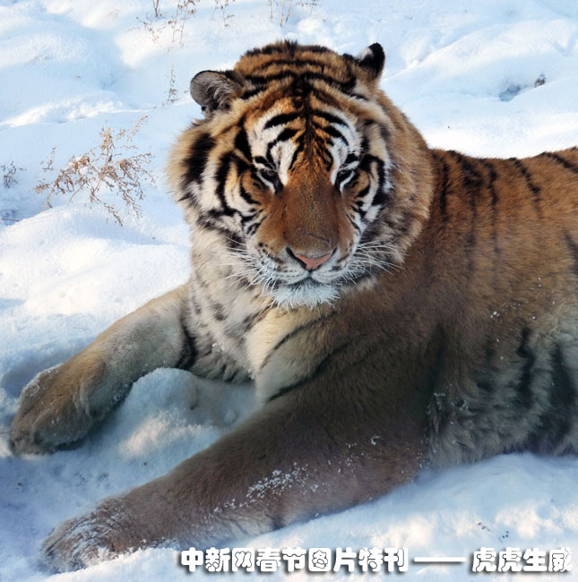 1月13日,黑龍江東北虎林園,老虎在雪地中嬉戲追逐。(王少華 張書儉 攝) 圖片來源:中國新聞網(wǎng)