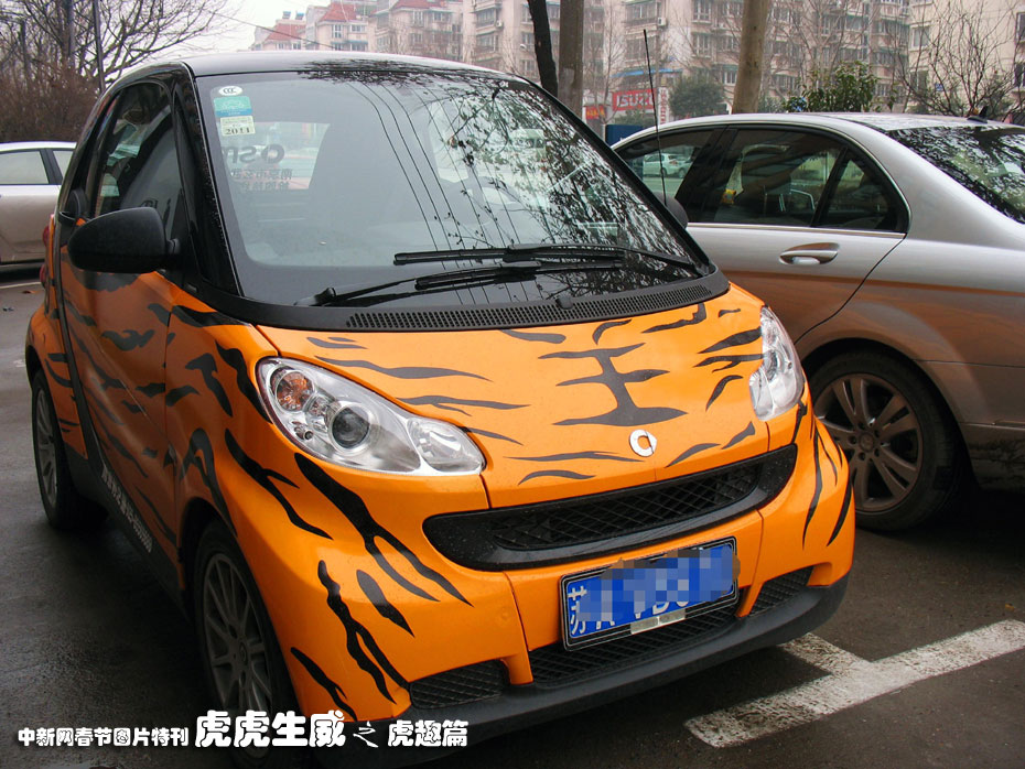 臨近虎年春節(jié),南京街頭不斷增多的虎元素增添了濃濃的年味,紅山路上的一位車主將愛車裝扮成了可愛又有趣的老虎模樣。中新社發(fā) 王路憲 攝