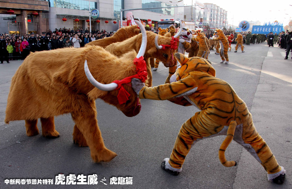 2月10日是正月十六,山西省盂縣舉辦《金牛鬧春》大型街頭春節(jié)文化活動節(jié)目展演,為現(xiàn)場5萬余名觀眾奉上了一場豐盛的元宵節(jié)文化大餐。盂縣西小坪村的旱船和東城武村的腦閣及石店煤礦的牛逗虎是展演活動中的三項非物質(zhì)文化遺產(chǎn)保護項目,是最有特色的民間紅火形式之一,它不僅歷史悠久,而且因為道具造型獨特,表演套路豐富,音樂伴奏喜慶熱烈而受歡迎。中新社發(fā) 程瑜 攝