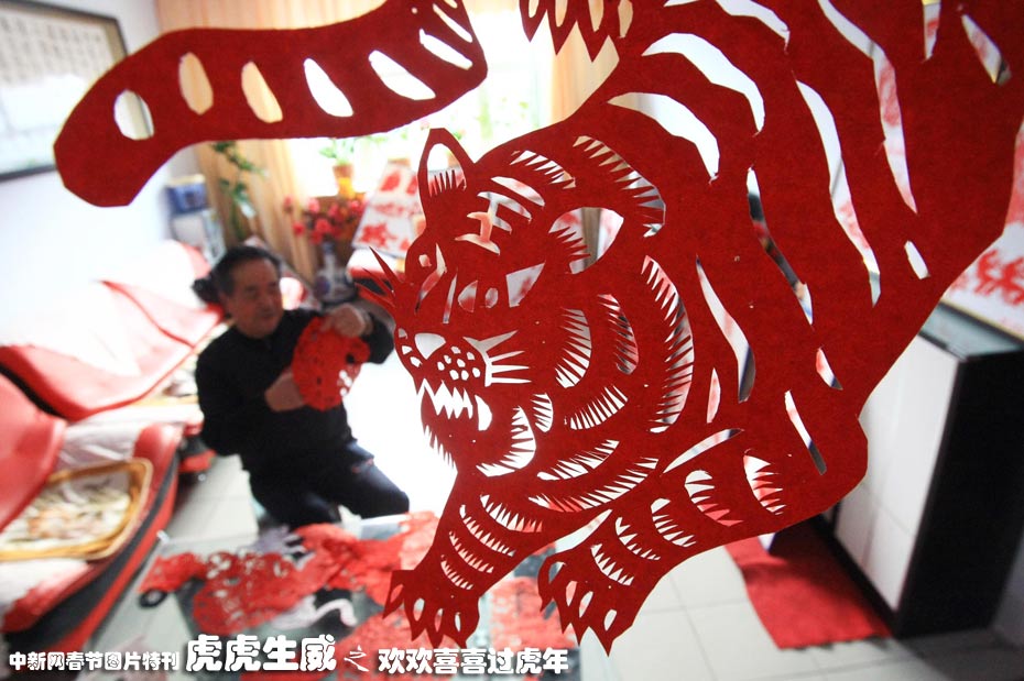 2月1日,已有56年剪紙經(jīng)驗(yàn)的新疆奇臺(tái)縣71歲民間剪紙藝人李萬發(fā)正在家中精心剪裁各類虎圖案,準(zhǔn)備贈(zèng)與親朋好友。中國農(nóng)歷新年即將到來,新疆各地以各種方式迎接農(nóng)歷虎年的到來。中新社發(fā) 劉新 攝