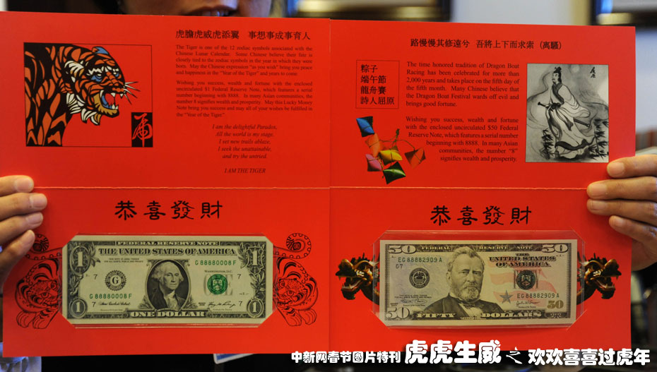 2009年12月1日,美國財(cái)政部造幣和印鈔局宣布,將限量發(fā)售中國虎年版“吉利錢”,向美國華裔社會(huì)送上新年祝福。中新社發(fā) 李靜 攝