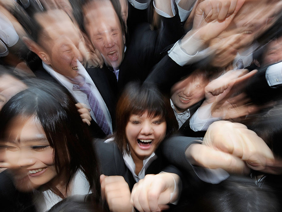2月10日,日本東京職業(yè)學(xué)校的學(xué)生在求職動員會上伸出拳頭展現(xiàn)信心。日本的失業(yè)率達(dá)5%,2011屆畢業(yè)生將面臨嚴(yán)峻就業(yè)形式。圖片來源:中國新聞網(wǎng)