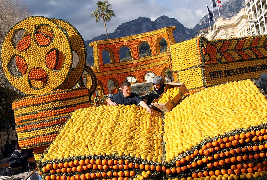 2010年2月10日,法國(guó)芒頓一年一度的檸檬節(jié)拉開帷幕。本次檸檬節(jié)將于3月3日結(jié)束。圖片來源:中國(guó)新聞網(wǎng)