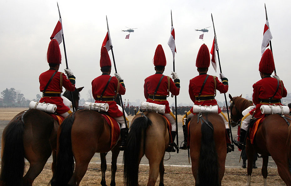 當(dāng)?shù)貢r(shí)間2月12日,尼泊爾士兵在首都加德滿都舉行了建軍節(jié)閱兵式。尼泊爾總統(tǒng)和總參謀長(zhǎng)檢閱了受閱部隊(duì)。圖片來(lái)源:中國(guó)新聞網(wǎng)