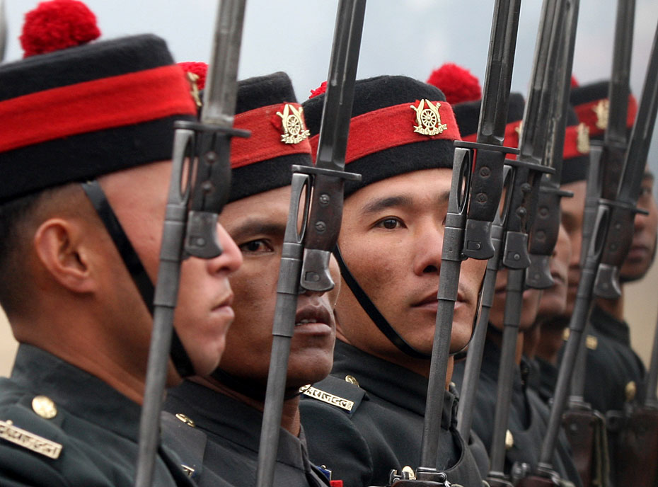 當(dāng)?shù)貢r(shí)間2月12日,尼泊爾士兵在首都加德滿都舉行了建軍節(jié)閱兵式。尼泊爾總統(tǒng)和總參謀長(zhǎng)檢閱了受閱部隊(duì)。圖片來(lái)源:中國(guó)新聞網(wǎng)