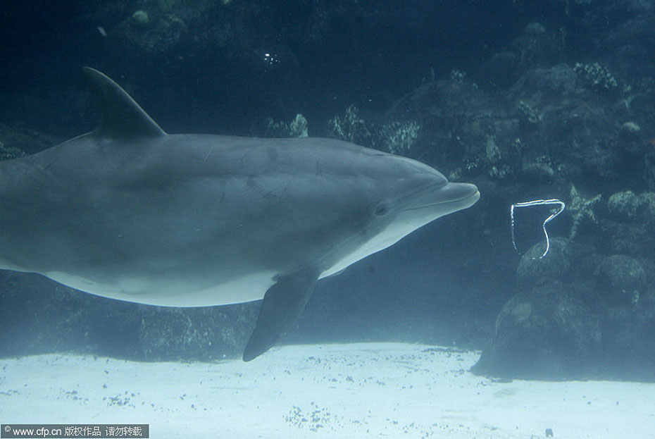 近日,美國(guó)奧蘭多海洋世界的一只寬吻海豚吹出“心形”氣泡,似乎要在情人節(jié)來(lái)臨前夕傳達(dá)濃濃愛(ài)意。圖片來(lái)源:CFP