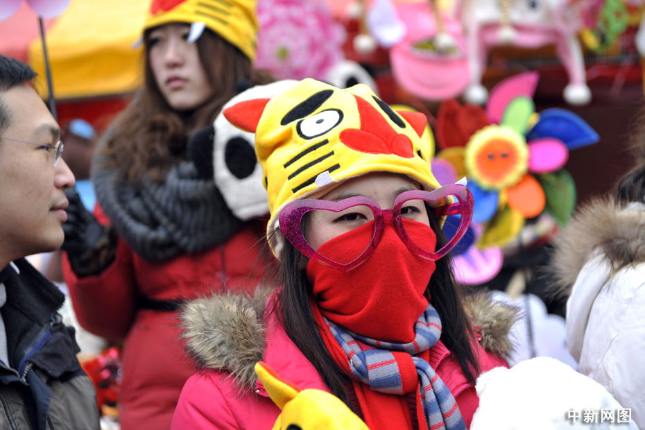 2月14日,農(nóng)歷正月初一,北京各大傳統(tǒng)廟會(huì)、洋廟會(huì)爭(zhēng)相開(kāi)幕,許多游客頭戴虎年飾品開(kāi)心游廟會(huì)。中新網(wǎng)記者 金碩 攝