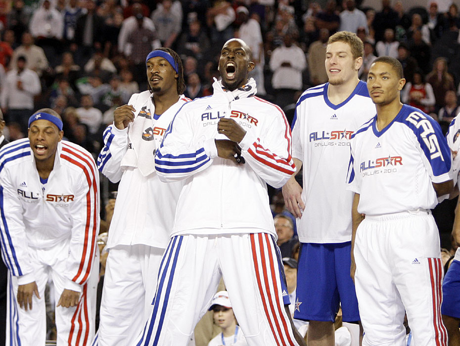美國當(dāng)?shù)貢r(shí)間2月14日,2010NBA全明星周末,東部明星隊(duì)以141比139險(xiǎn)勝西部明星隊(duì)。整場比賽猶如度假一般全無緊張氣氛。圖片來源:中國新聞網(wǎng)