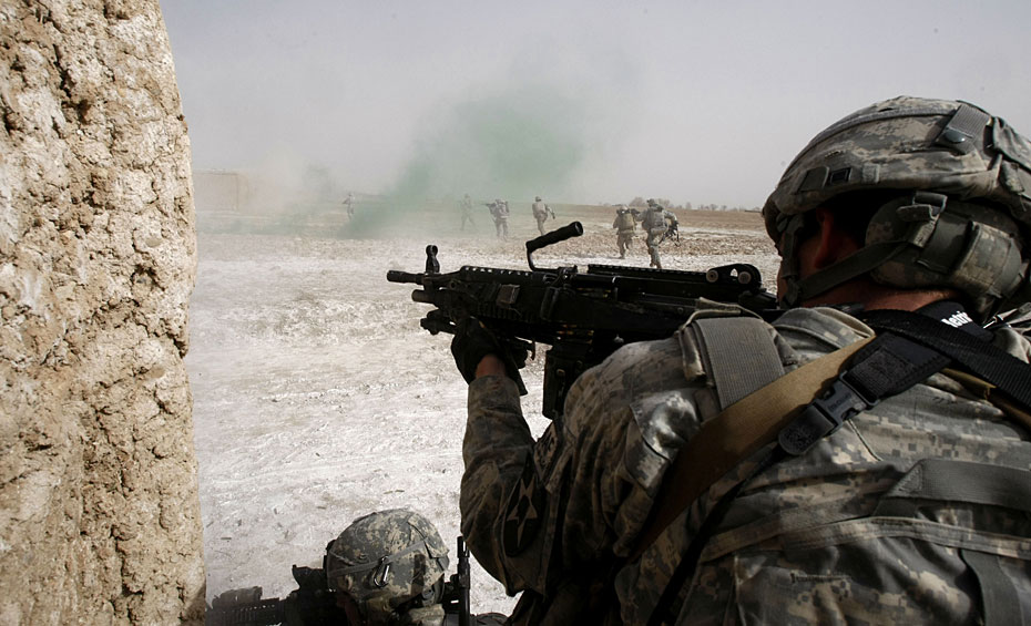 以美國為主的北約與阿富汗盟軍對阿南部城市馬爾賈的清剿活動14日進(jìn)入了第二天。隨著巷戰(zhàn)展開,交火愈加頻繁和激烈。圖片來源:中國新聞網(wǎng)