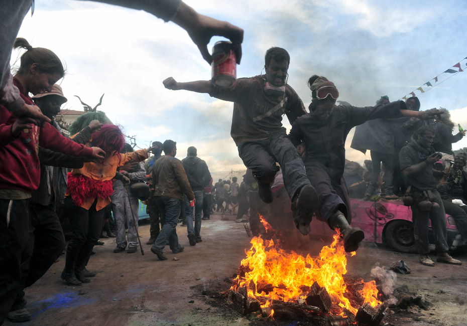 2月15日,希臘港口加拉西迪,狂歡者在街頭參加“面粉大戰(zhàn)”!懊娣鄞髴(zhàn)”是當(dāng)?shù)貞c?駳g季結(jié)束的一項(xiàng)傳統(tǒng)活動(dòng),隨后將是為期40天的齋戒月直至復(fù)活節(jié)。圖片來源:中國新聞網(wǎng)