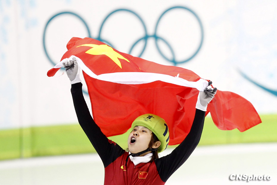 2010年溫哥華冬奧會(huì)短道速滑女子500米決賽北京時(shí)間2月18日上午11時(shí)許舉行,中國選手王濛獲得冠軍,為中國代表團(tuán)再添一枚金牌。圖片來源:中國新聞網(wǎng)