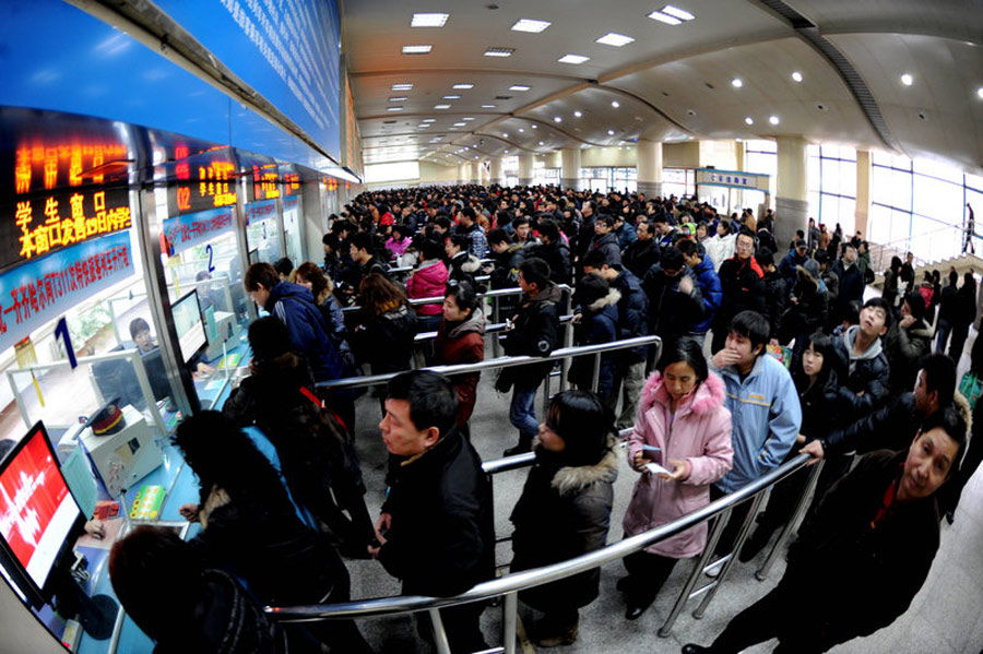 2月18日,農(nóng)歷正月初五,沈陽火車站迎來春節(jié)后首個客流高峰,排隊購票的長排達到售票處外2公里。以學生、農(nóng)民工和探親流為主的客流高峰涌進車站。針對節(jié)后春運潮的提前到來,沈陽鐵路相關(guān)部門啟動預案,疏導旅客進站上車,確保旅客平安出行。紅一 攝