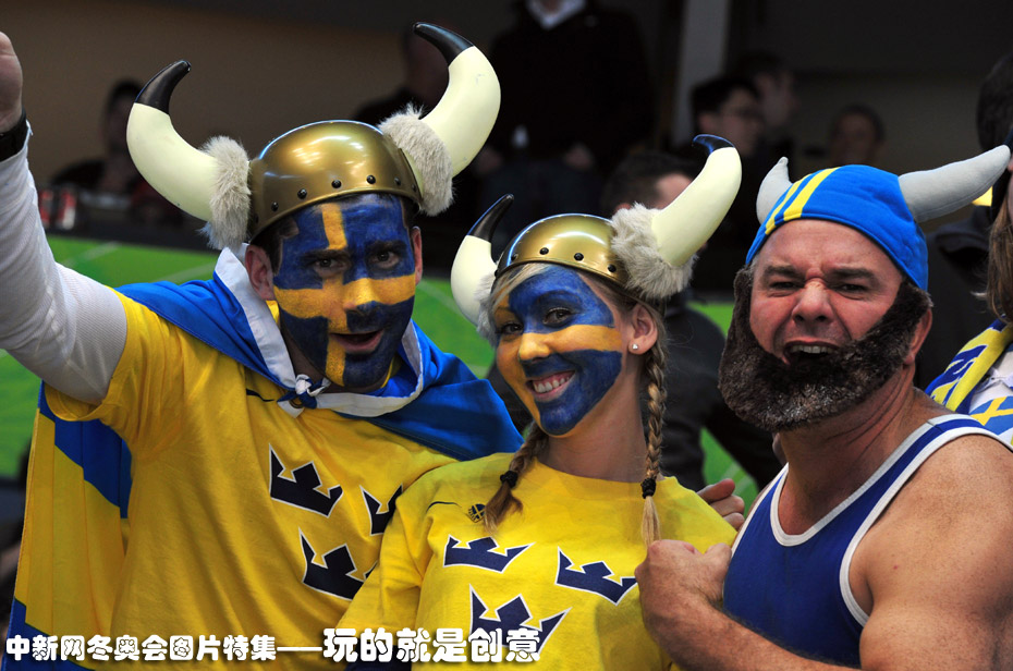 圖為冰球賽場(chǎng)上快樂的瑞典球迷。圖片來(lái)源:中國(guó)新聞網(wǎng)