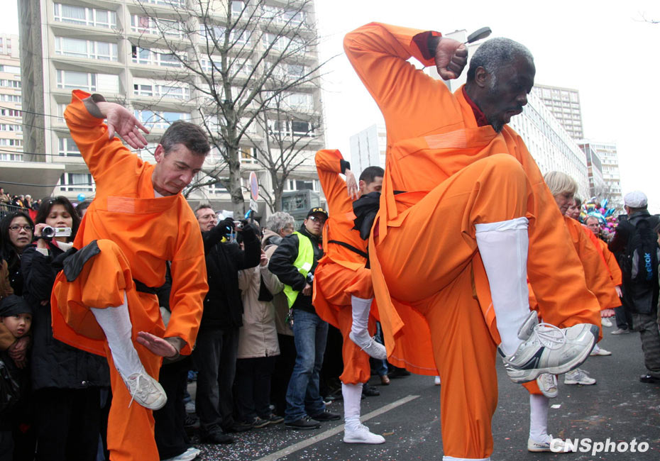 法國(guó)巴黎著名的“唐人街”——十三區(qū)21日下午舉行虎年春節(jié)華人嘉年華大游行,給這個(gè)有著顯著中國(guó)傳統(tǒng)文化特色的華人聚居區(qū)帶來(lái)了歡樂(lè)與喜氣。圖為洋武僧方陣表演中國(guó)功夫。中新社發(fā) 吳衛(wèi)中 攝