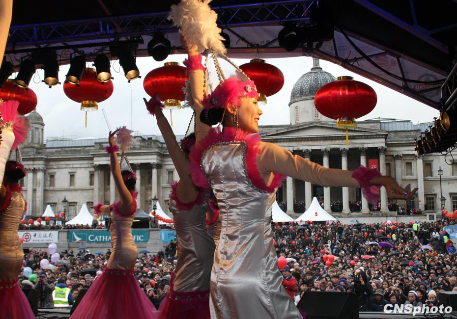 當?shù)貢r間2月21日下午,由國務院僑辦組派的“文化中國·四海同春”藝術團,亮相亞洲之外最大規(guī)模的春節(jié)慶;顒——倫敦春節(jié)慶典,藝術團高水準的演出,受到數(shù)萬觀眾的熱烈歡迎,成為當日多項慶典活動中最受矚目的節(jié)目。中新社發(fā) 魏晞 攝