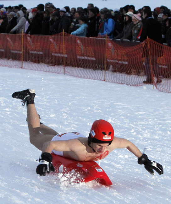 近日,在德國北部小鎮(zhèn)舉行了一場(chǎng)別開生面的滑雪大賽,參賽者在冰天雪地中赤裸著上身在滑雪板上滑行。超過一萬名觀眾觀看了比賽。