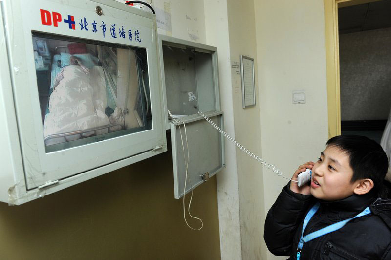每天邵帥都會和母親通過醫(yī)院內的視頻電話聊上幾句。朱嘉磊/CFP