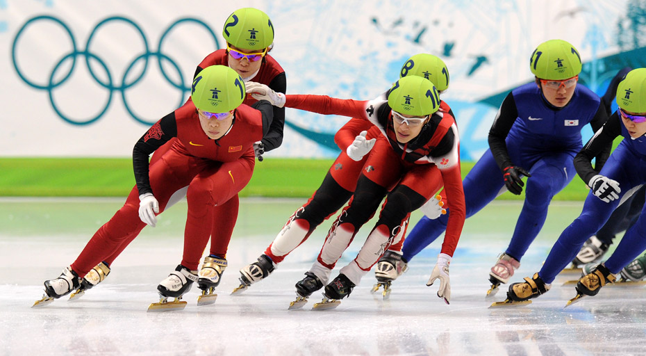 當(dāng)?shù)貢r間2月24日,溫哥華冬奧會女子短道速滑3000米接力A組決賽中,中國隊王濛、周洋、孫琳琳、張會四朵金花聯(lián)袂出擊,最終將金牌歸入中國隊囊中。圖片來源:中國新聞網(wǎng)