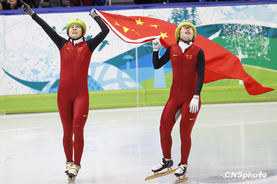 北京時(shí)間27日中午,中國(guó)選手王濛在2010年溫哥華冬奧會(huì)短道速滑女子1000米的決賽中摘得金牌。圖片來源:中國(guó)新聞網(wǎng)
