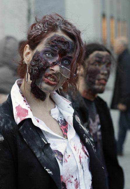 當(dāng)?shù)貢r間2月27日,在西班牙馬德里,眾多愛好者裝扮成“僵尸”的模樣,在街頭舉行巡游活動。