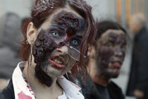 2月28日,日本東京馬拉松賽舉行,超過30000名愛好者參加了此次馬拉松賽。很多參賽者的怪異服裝成為了賽場上的一道風(fēng)景。圖片來源:中國新聞網(wǎng)