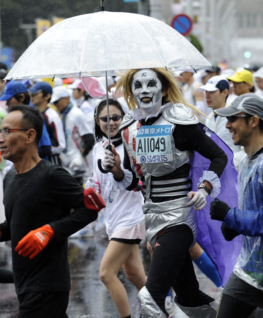 2月28日,日本東京馬拉松賽舉行,超過30000名愛好者參加了此次馬拉松賽。很多參賽者的怪異服裝成為了賽場上的一道風(fēng)景。