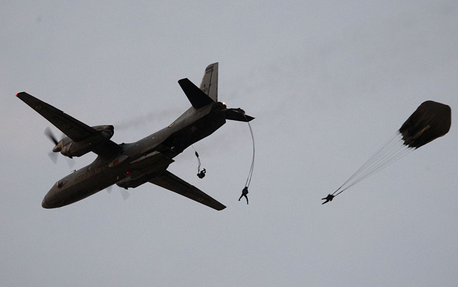 2月28日,印度空軍在該國(guó)西部地區(qū)舉行大規(guī)?罩谢鹆φ故狙萘(xí),出動(dòng)了包括“費(fèi)爾康”空中預(yù)警機(jī)、蘇-30戰(zhàn)斗機(jī)、米格-29戰(zhàn)斗機(jī)、幻影-2000戰(zhàn)斗機(jī)、伊爾-76運(yùn)輸機(jī)和米-35武裝直升機(jī)等約百架戰(zhàn)機(jī)。圖片來(lái)源:中國(guó)新聞網(wǎng)