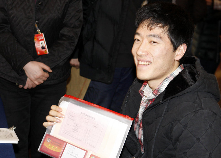 3月2日,參加全國(guó)政協(xié)的委員劉翔趕赴北京國(guó)際飯店報(bào)到。新宇 攝