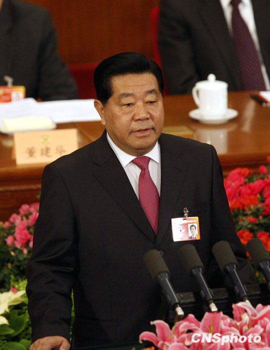 3月3日,全國(guó)政協(xié)十一屆三次會(huì)議在北京人民大會(huì)堂開(kāi)幕,全國(guó)政協(xié)主席賈慶林作全國(guó)政協(xié)常委會(huì)工作報(bào)告。中新社發(fā) 張宇 攝