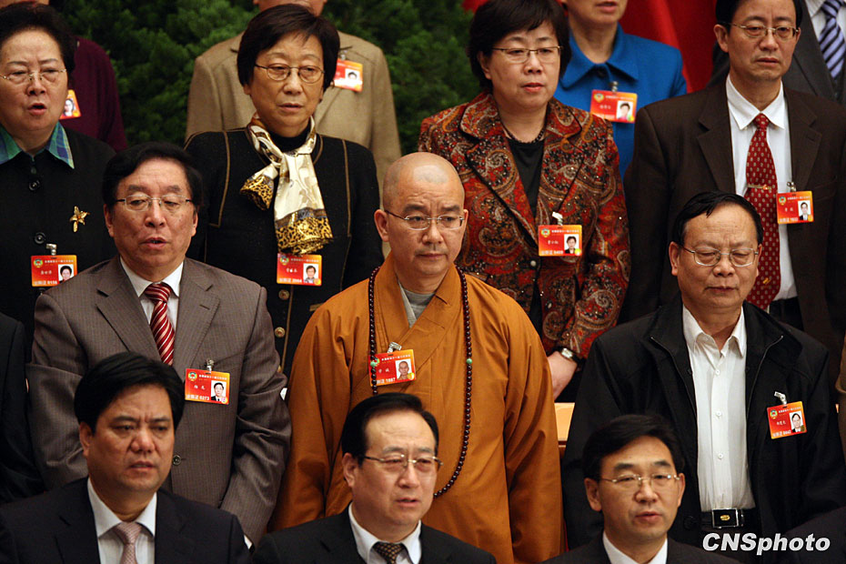 3月3日下午,全國(guó)政協(xié)十一屆三次會(huì)議在北京人民大會(huì)堂開(kāi)幕,全體委員高唱國(guó)歌。中新社發(fā) 湯彥俊 攝