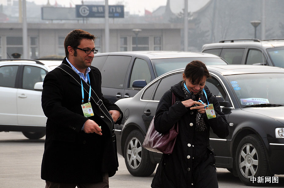 3月3日下午,全國政協(xié)十一屆三次會議在北京開幕。外國記者抵達(dá)人民大會堂對中國“兩會”進行報道。中新網(wǎng)記者 吳歆 攝
