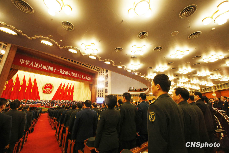 3月5日上午9時(shí),十一屆全國(guó)人大三次會(huì)議在北京隆重開幕。國(guó)務(wù)院總理溫家寶作政府工作報(bào)告。中新社發(fā) 任晨鳴 攝