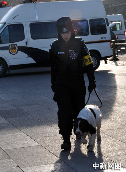 3月5日上午9時(shí),十一屆全國(guó)人大三次會(huì)議在北京隆重開(kāi)幕。國(guó)務(wù)院總理溫家寶作政府工作報(bào)告。圖為圖為人民大會(huì)堂外的安檢處。中新網(wǎng)記者 吳歆 攝