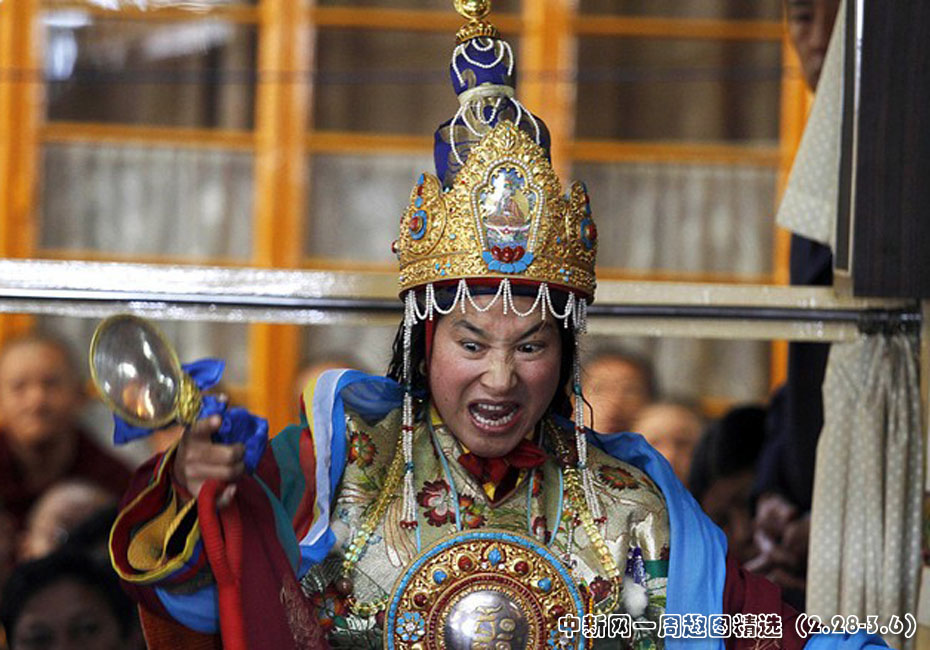 3月2日,在印度達(dá)蘭薩拉,西藏神使慈仁敬安正在進(jìn)行降神儀式。圖片來源:中國新聞網(wǎng)>>點擊觀看詳細(xì)內(nèi)容