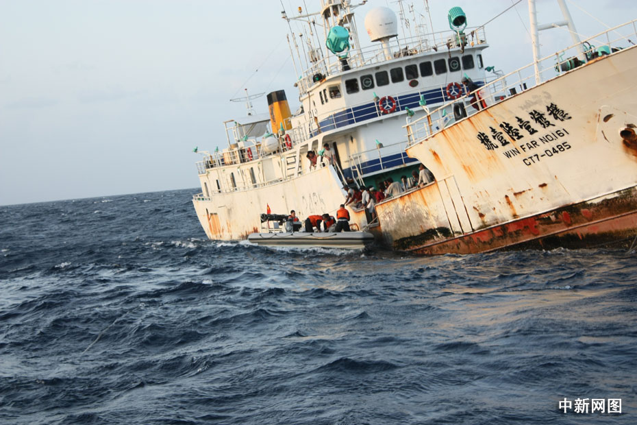 09年4月在西印度洋遭索馬里海盜挾持的臺(tái)灣遠(yuǎn)洋漁船“穩(wěn)發(fā)161號(hào)”,歷經(jīng)各方營(yíng)救,終于在遭挾持10個(gè)多月后,包括船長(zhǎng)顏勝男等共28人返回高雄港。圖片來(lái)源:中國(guó)新聞網(wǎng)