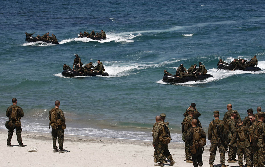 3月9日,美國與菲律賓在菲律賓甲米地省南部特爾納特海軍基地舉行聯合軍事演習。此次軍演雙方共出動了數百名作戰(zhàn)人員。圖片來源:中國新聞網