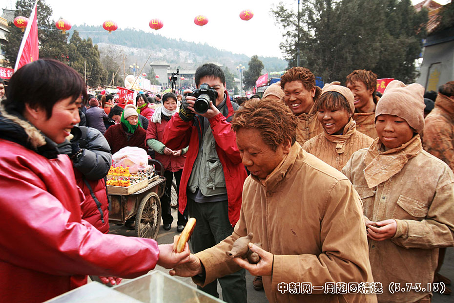 3月7日,一群“泥人”在河南?h廟會上自制泥玩具并將與現(xiàn)場商販交換商品。這次“大地上的人”藝術活動是“王剛——老萬系列作品”的第五次行為藝術活動!袄先f”代表“千千萬萬”。本次活動的主題從關注農(nóng)民工擴展到了關注人類的生存與發(fā)展。圖片來源:中國新聞網(wǎng)>>點擊觀看詳細內(nèi)容